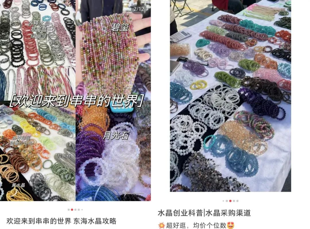 产量大的水晶类型以串计费,稀缺类型以克计费。(图/小红书截图)