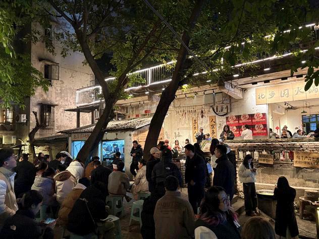 街上挤满了返乡的年轻人,各大茶叶店门口挤满了等待号码的青春面孔。一些连锁火锅品牌的店外,也挤满了吃零食喝茶的顾客。