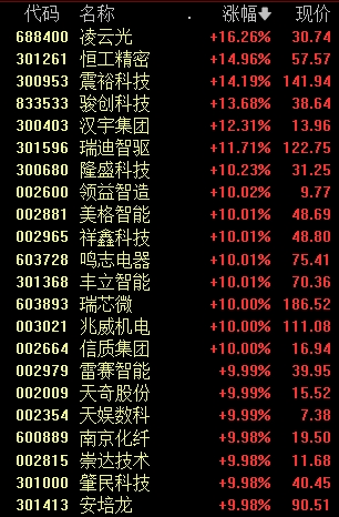 人类机器人的概念再一次活跃起来,冀凯股份走出12天10个涨停板,美格智能4连板。