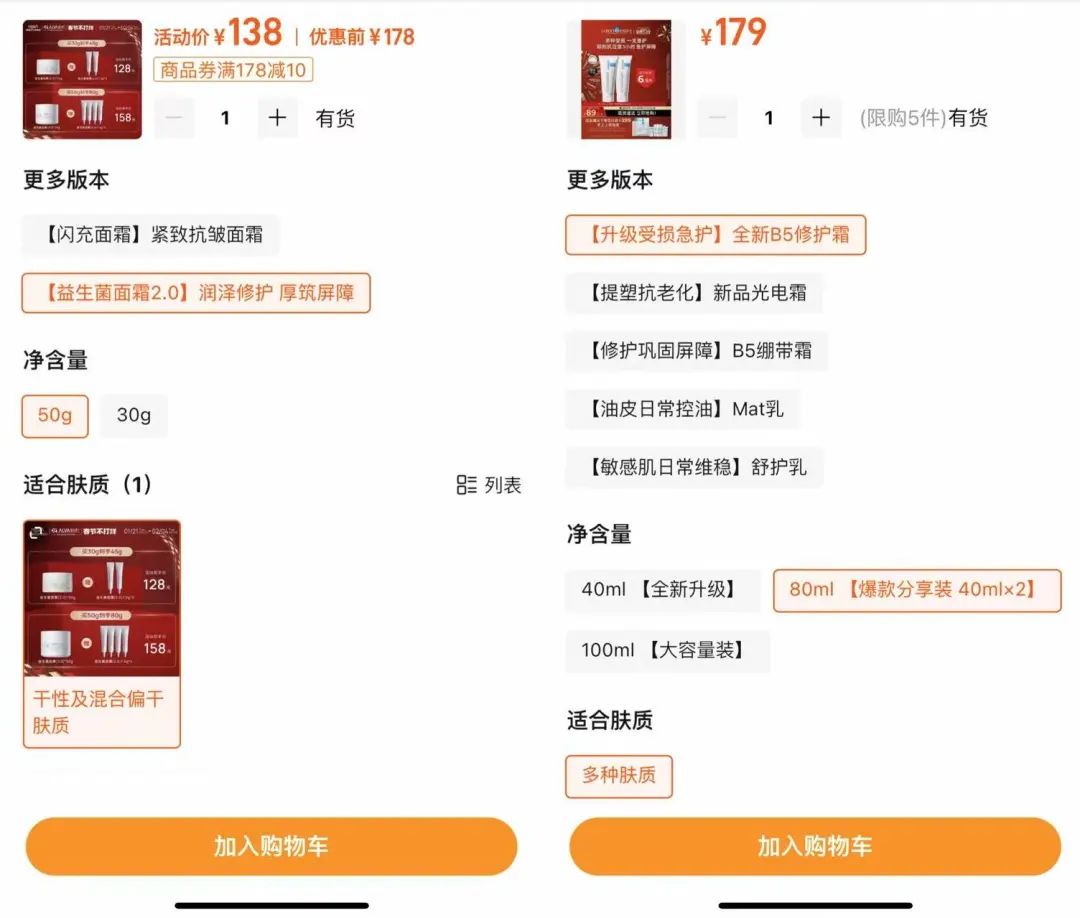 在商品>品牌推广期间,公司一般会将营销预算分配给有效广告。比如巨人生物在科普初期和推广可重美的胶原蛋白面膜时,主要是效果广告;