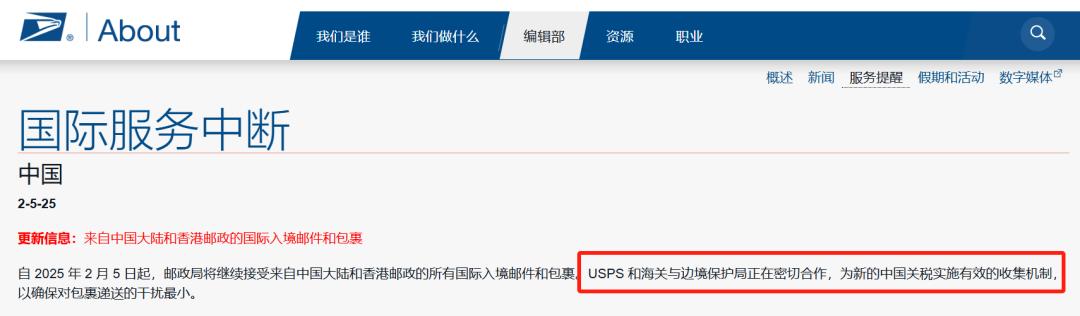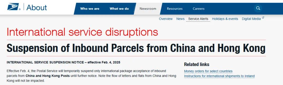 美国邮政的“暂停令”于2月4日与特朗普签署的行政令同步生效。