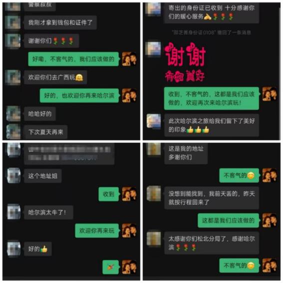 哈尔滨市公安局不断探索创新的工作方式,以使每一张丢失的身份证都能顺利回到主人手中。另一方面,积极与景区建立沟通合作机制,双方保持信息交流,凝聚强大的工作合力,为游客提供全方位的服务。发现游客身份证后,将利用景区广播和LED大屏幕,循环播放招聘信息。另一方面,安排专门的警力,通过仔细的工作找到车主的联系方式。如果游客还在公园里,警察会立即归还他们的证件。如果游客已经离开公园,警方会根据游客住在酒店的位置发送证件上门;如果游客已经离开哈尔滨,警方会亲密添加车主微信,通过快递邮寄,努力让这些丢失的身份证尽快归还原车主。根据不完全统计,自冰雪大世界开业以来,已经成功地帮助来自全国各地的游客找到了370多个证件。