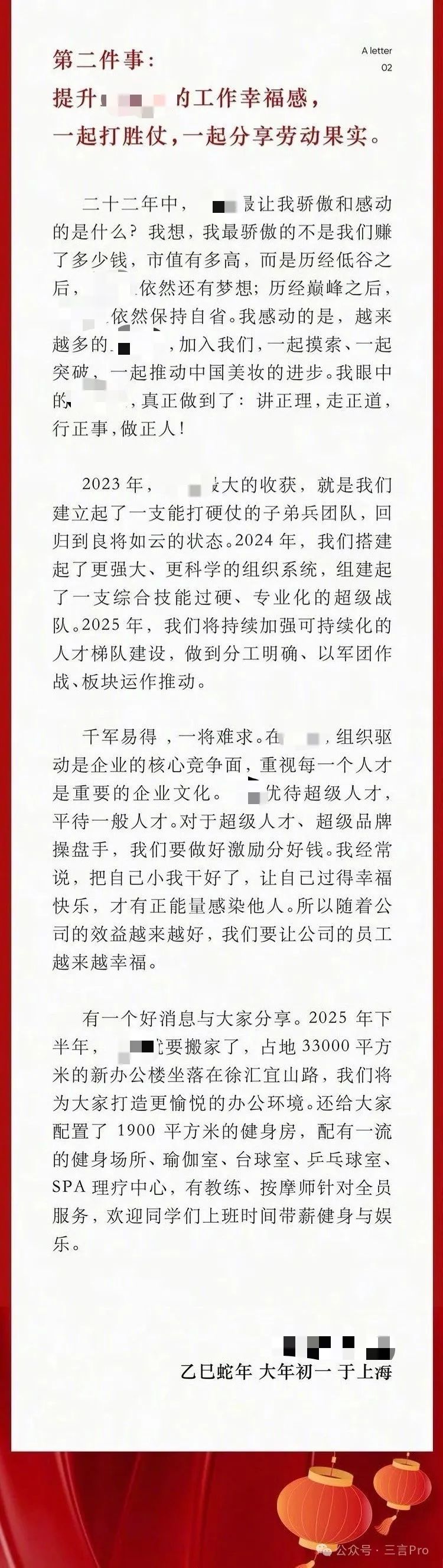但是有点讽刺的是,前几天公司发布的内部信中,还强调2025年要提高员工的工作幸福感,重视员工。