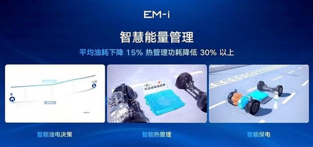 此外,雷神 EM-i 非常电混系统还引入了更智能的能量管理系统。与强大的天地云一体化智能网络相结合, AI 计算率,该系统能够实现对油电决策、电池加热冷却、目标电量和充电提醒的信息化管理。这种技术的应用,促使使用雷神 EM-i 很好的电混系统车型,平均油耗降低 热管理功耗降低15%。 30% 以上。