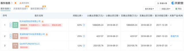 数据显示,观致汽车创立于 2007 年 12 月份,曾使用名奇瑞量子汽车有限公司,法定代表人为何华,企业注册资本和实收资本均为 169.3 由杭州诚茂投资有限公司、芜湖奇瑞汽车投资有限公司、 QUANTUM(2007)LLC 杭州诚茂投资有限公司共同持有三家公司, 63%,后两者各自持仓 25% 和 12%。换言之,杭州诚茂投资有限公司是观致汽车的大股东。