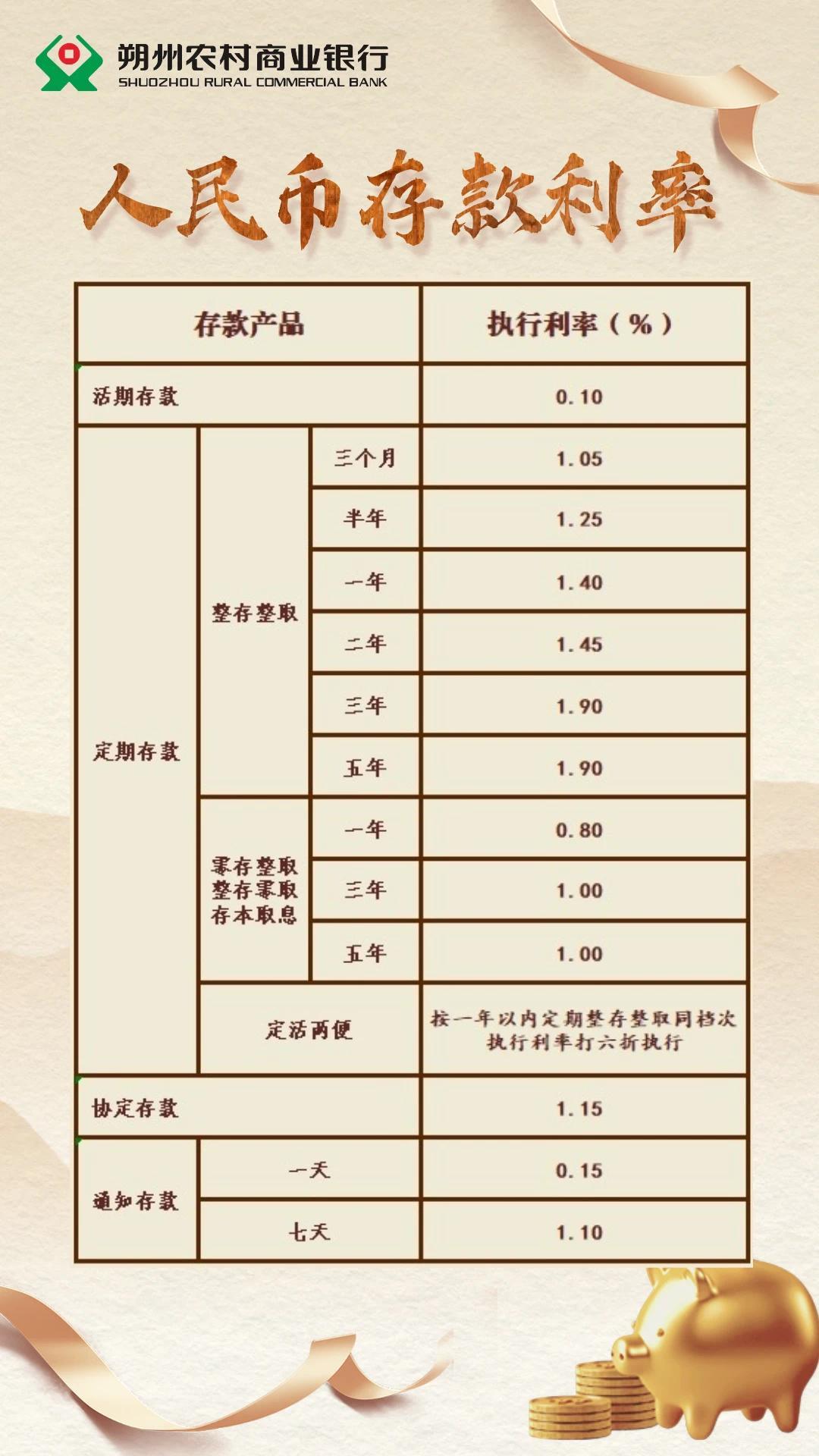 二月五日晚八点,朔州农商银行在官方微信公众号上发布公告,介绍银行最新的人民币存款利率。