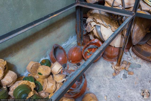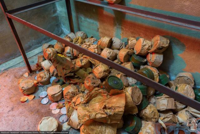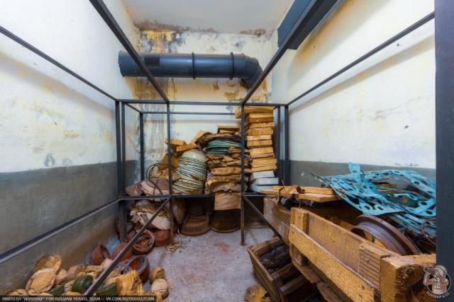 继续前进,作者进入了一个更像战争时期仓库的房间。架子上装满了盒子、成堆的工具和包裹未知物体的秘密药物。他注意到一些上面写着“气体”的大金属罐。这显然是一个空气过滤系统,用于净化空气,用于在化学攻击或放射性污染的情况下进行空气污染。