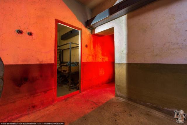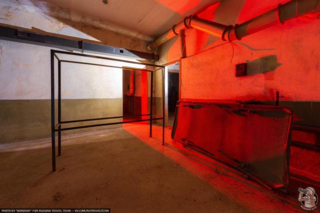 混凝土过道,生绣管,床板在灯光下染上了血红色的光辉。废弃避难所的气氛既可怕又令人着迷。