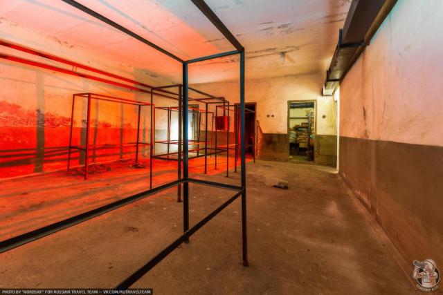 第一个房间就像军营。周围是铁床板,但是没有床垫。墙上有固定架子的痕迹,可能有架子挂在那里。电线在某些地方被切断,灯泡被拧走或打碎。