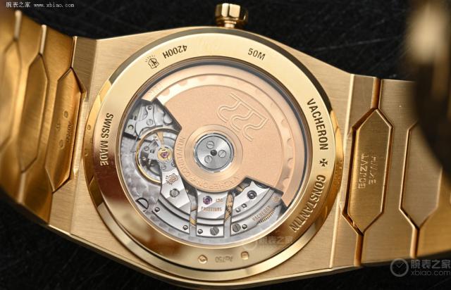 时间来到 2022 年,品牌以 37mm 的" Jumbo “为原型,推出第一款 Ref.222 复刻佳作(型号) 4200H/22J-B935)。基于原创核心设计,改进工艺细节,采用背透后盖,更换性能更现代的后盖。 2455/2 型号自制机芯。该机芯直径 26.2 mm、振频 拥有28800VPH 40 小时动储。一个值得注意的细节是,22K 金自动陀上的" 222 "遵循与原表后盖刻字相同的字体,向经典致敬。(图 / 文 腕表之家 萧峰)