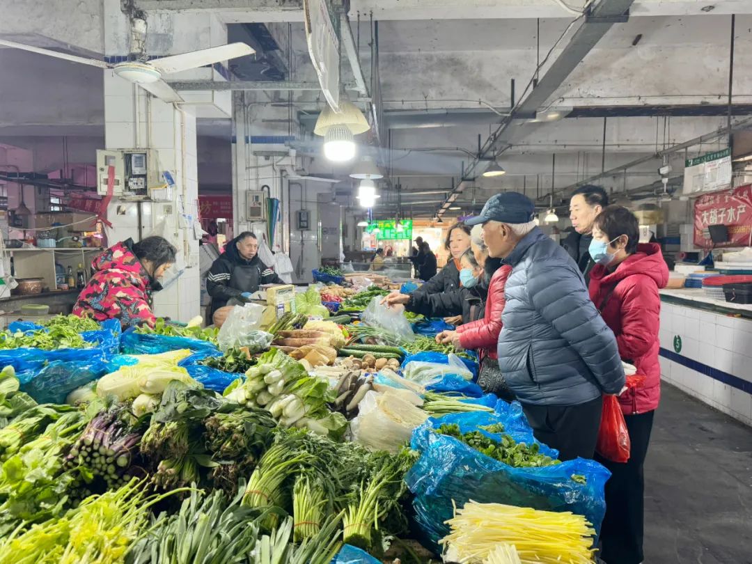 上午8点左右,记者在人乐农贸市场看到,大部分摊位已经恢复营业,菠菜、青菜等叶类蔬菜新鲜嫩滑,肉类、熟食、水产品、新鲜水果等。摆在各个摊位前,来买菜的市民络绎不绝。不少市民反映,今年蔬菜价格稳定,节后价格下跌,品类充足。今日购买冬笋、草头、枸杞头、紫甘蓝,价格较年前有所下降。”市民李女士告诉记者。
