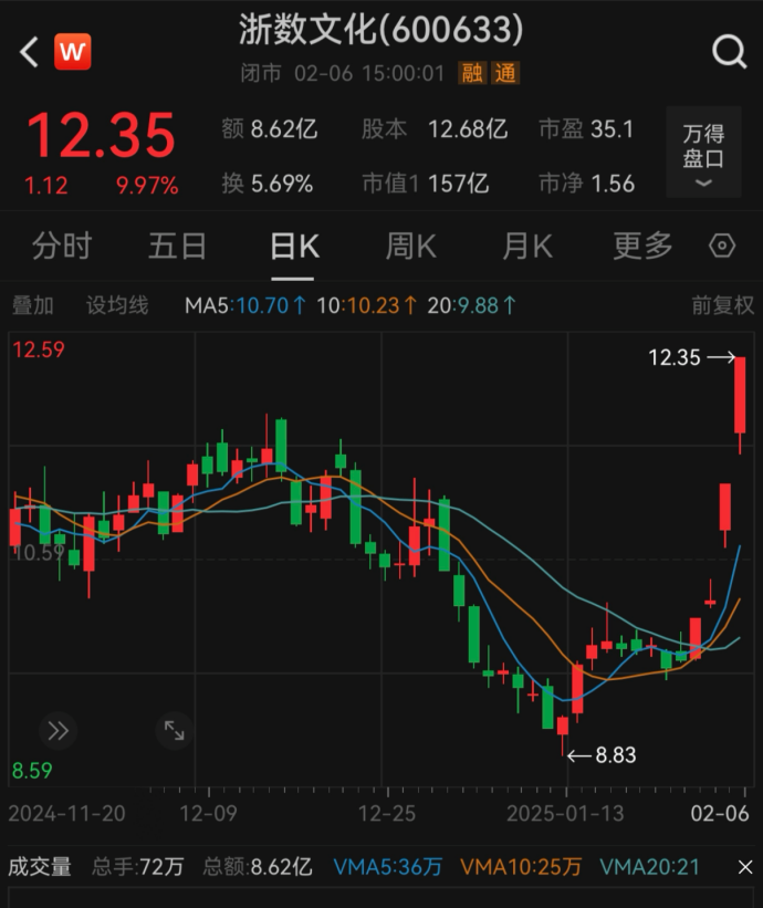 此外,浙江数字文化发布公告称,针对部分媒体平台将公司股票视为“DeepSeek概念股”的问题,截至目前,公司及其子公司与杭州深度追求人工智能基础技术研究有限公司之间没有直接或间接的股权关系,也没有开拓市场合作。