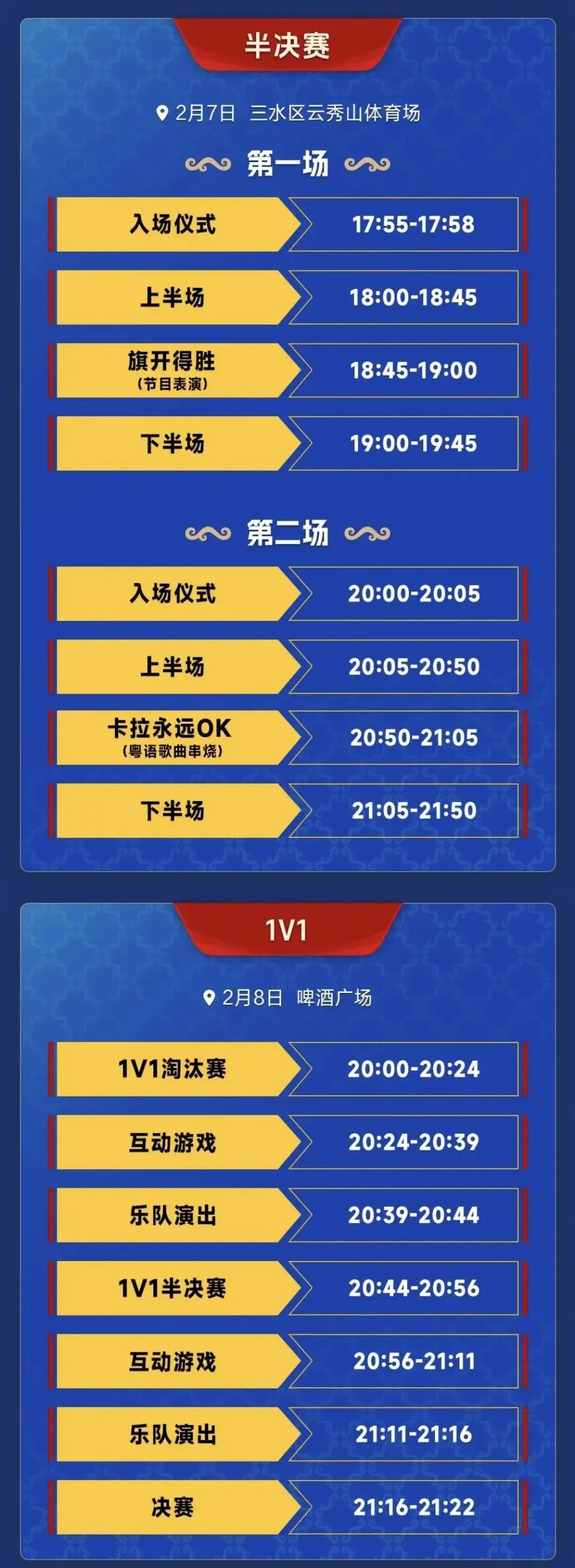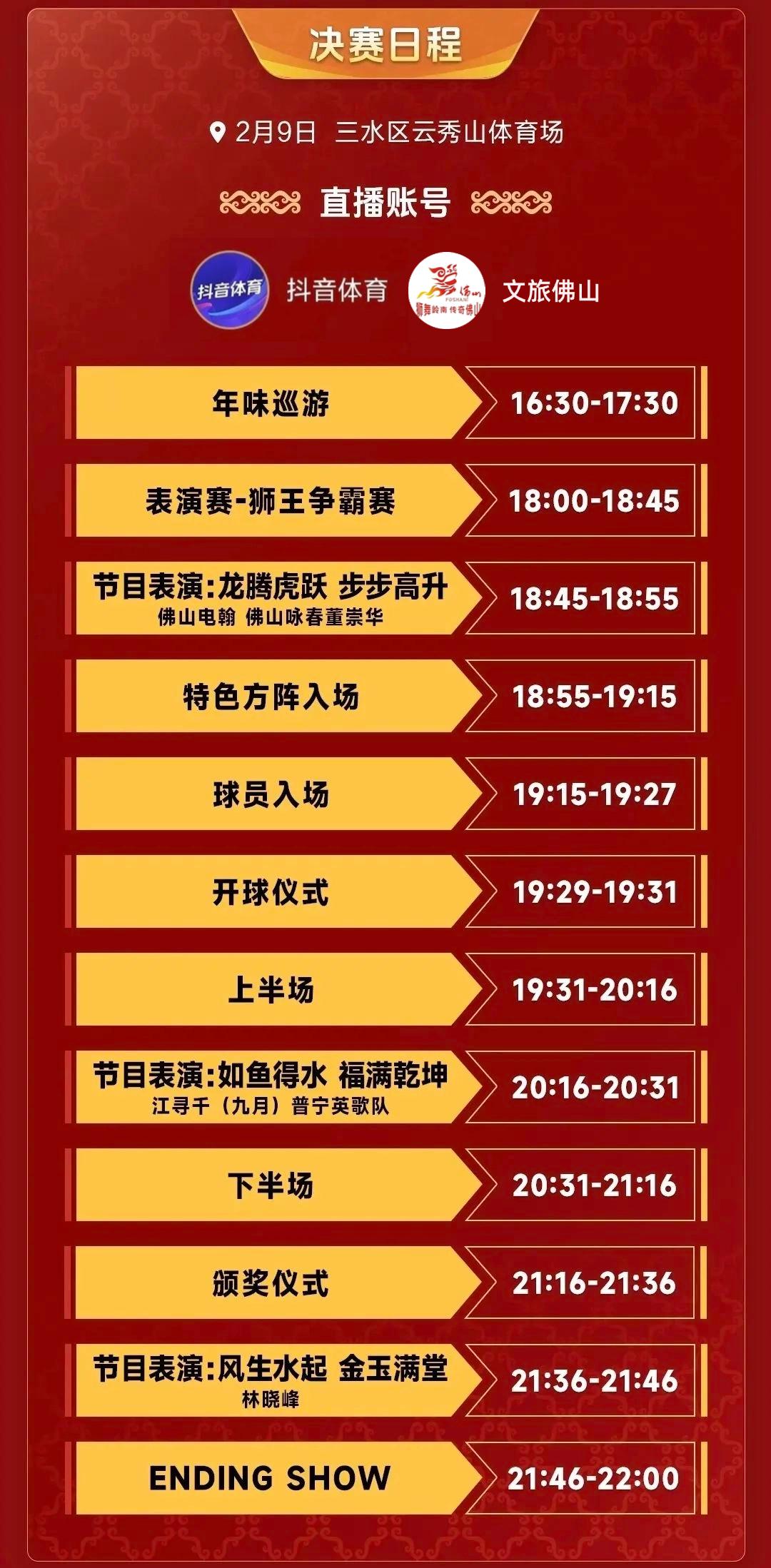 2月6日至2月9日,Tiktok足球嘉年华佛山站淘汰赛和决赛将在三水云秀山体育场举行。决赛当天,醒狮、英歌舞等11大特色方阵齐头并进。郭艾伦、苏炳添、谢思邈等。,以及林晓峰、佛山电翰、江寻千(九月)等的表演嘉宾。>>详情:佛山将上下滑动查看比赛时间表↓