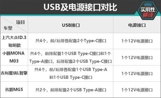就充电插座数量而言,星瑞 L 表现最佳,前排和后排各自配置 1 个 USB Type-A 接口和 1 个 USB Type-C 接口,可以满足不同移动设备的充电需求。相比之下,名爵 MG5 仅配置 2 一个充电插座,而且都是 USB Type-A 接口,适应性略差。另外,四款车都配备了 1 个 12V 电源接口。