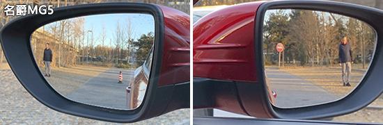 外后视镜视野范围测试环节,四款车两侧外后视镜均采用普通镜片。其中,名爵 MG5 右外后视镜检测结果突出,达到同级上游水平。相比之下,ID.3 和小鹏 MONA M03 两侧外后视镜测试结果均未达到同级别车型测试平均水平,存在一定的视野盲点,日常驾驶并线时要多加注意。