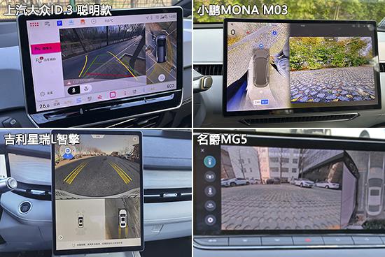 就影像辅助系统而言,四款车都配备了 360 ° 全景图像系统,整体画质清晰,车辆周围畸变控制合理。此外,四款车的图像系统都配备了倒车辅助线,并支持 3D 屏幕显示和透明底盘功能,实用性能显著。