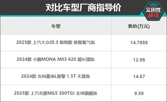 紧凑型汽车一直是汽车市场的战略要地。对于消费者来说,这一细分领域的车型不仅能满足家庭的日常需求,而且具有贴近百姓的价格。我们曾在之前的《日常实用测试报告》中对各种紧凑型车进行了测试。今日,我们从中挑选出四款具有代表性的车型,即上汽大众。 ID.3(以下简称:ID.3)、小鹏 MONA M03、吉利星瑞 L 智力发动机(以下简称星瑞) L)、名爵 MG5。通过详细的对比,可以看出哪一款车型在实用性方面表现更好。