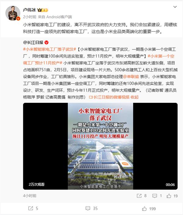第一批小米武汉工厂搞空调 首款自研空调预计11月投产