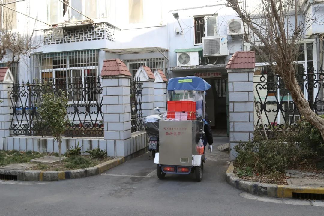 “阿姨,饭来了!小心烫伤。”准备好工作后,送餐师傅们分开行动,骑着送餐车出发。沿着熟悉的路线,他们穿梭于各个社区,敲开一扇门,把热气腾腾的饭菜递给老人。