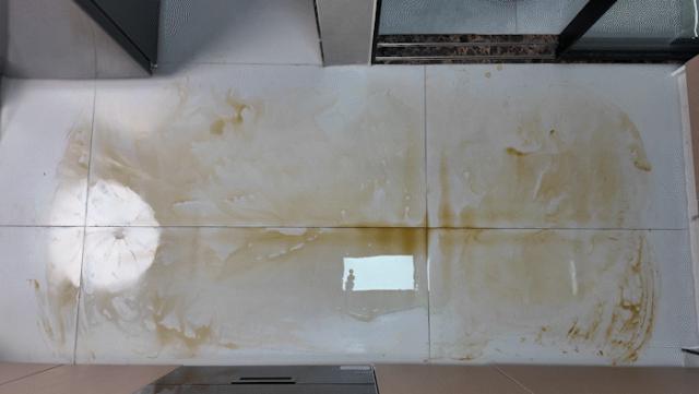 酱油渍的清洁将是这次的地宝。 T80 面对终极挑战,油性污垢是厨房中常见的重污物类型,即使家庭用户没有打翻或散落各种油脂产品或调味品,厨房空间中包含地面的各种表层也会伴随着长期使用而被油烟污染。一般来说,在家庭清洁中,它是一个重要和困难的区域。按常理来说,可以说不适合用扫地机器人清洗。
