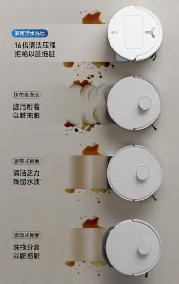 除了传统战略在形态上的优势外,科沃斯在地宝 T80 装载在机器人上的 OZMO ROLLER 恒压活水洗地技术还结合了科沃斯集团旗下清洁家电分公司添加的洗地机核心技术,通过喷洒活水和即时刮擦告别“脏拖脏”。