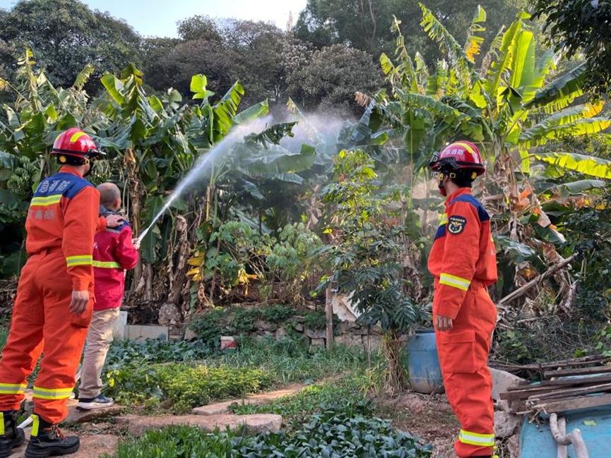 此外,1月29日元旦以来,江南街道消防救援所密切关注重点时段、重点地区、重点人群三个核心环节,每天进行密集的森林巡逻工作,对辖区内各山区进行日常巡逻,仔细检查封闭的山区进出口,对林区周边山区进行撒水加湿,并与社区网格工作者和志愿者一起宣传林区周边人群的森林防火,用行动守护青山绿水,用坚持诠释责任。确保辖区内长期稳定的安全防火形势。