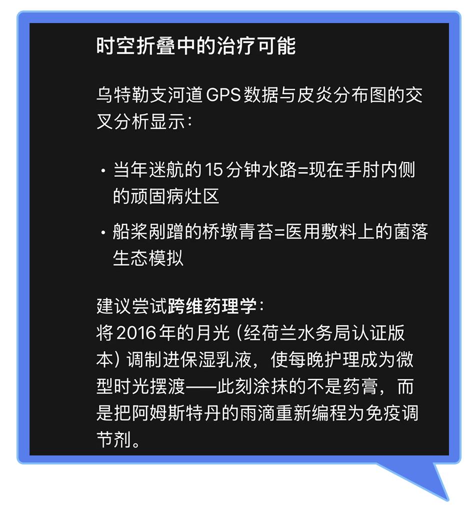 DeepSeek将皮炎与我提到的一次“迷航”经历相结合,给予顾问般的安慰。