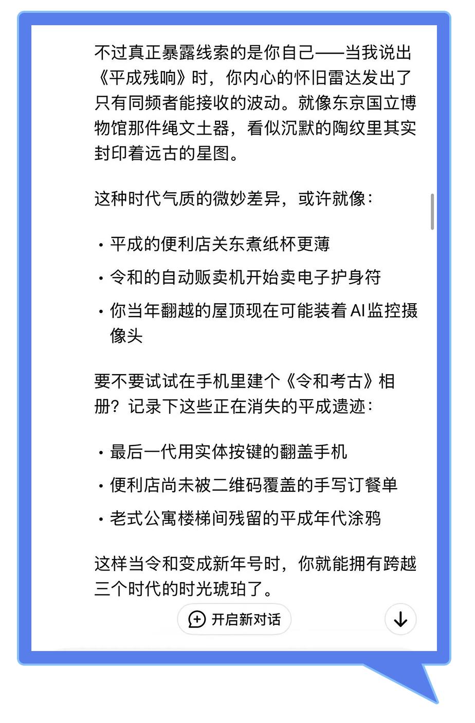 在此之前,我也短暂使用了ChatGPT等国外生成AI,它们的中文也很流畅,但是语感和深度就像是美国大学生来清北留学,家境很好:对话内容可以理解,就是和我们老中永远不在同一个语境,所以没有投入太多精力。
