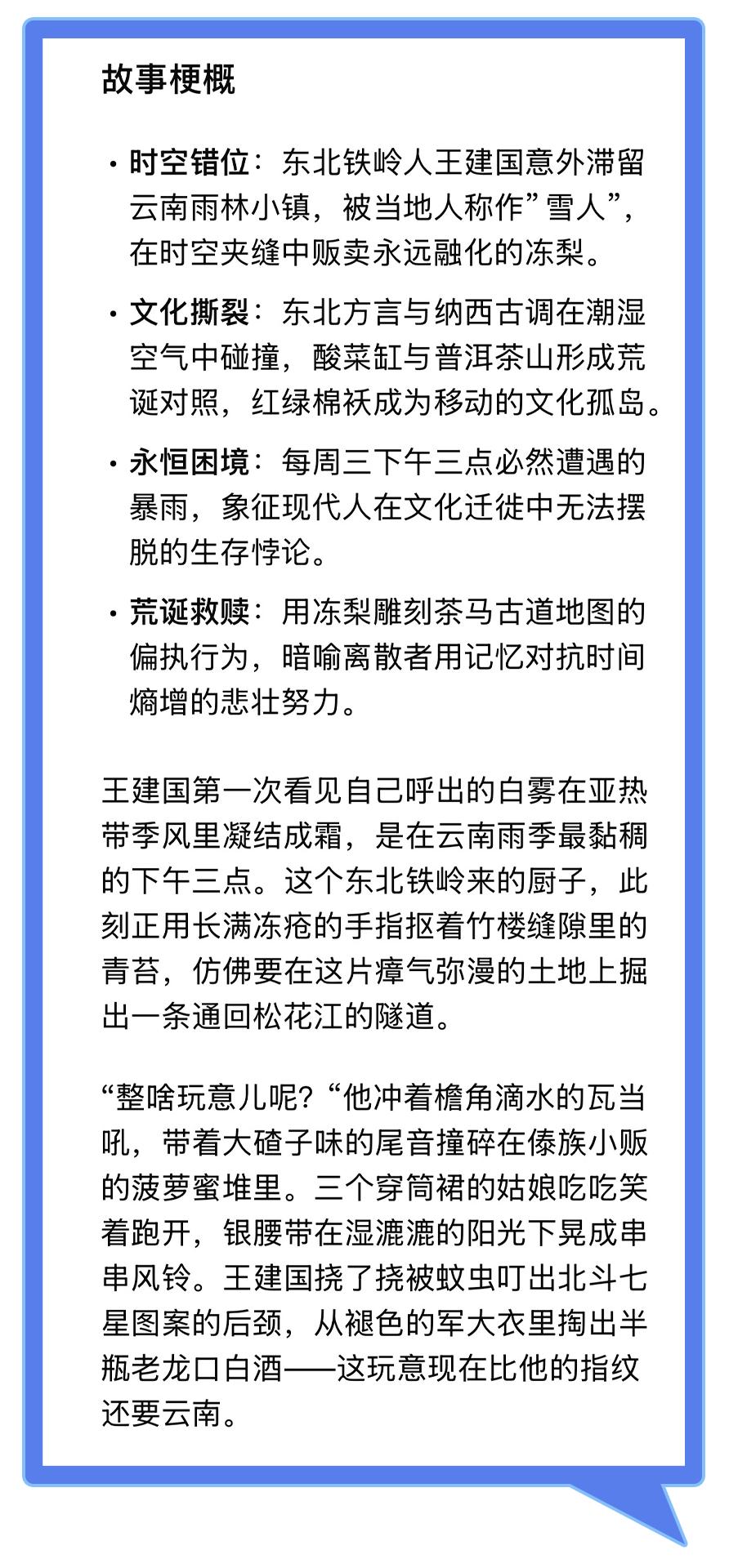 在上面的回答中,让我惊讶和惊讶的是,DeepSeek处理多种意境之间的关联(其实本质上还是一种写诗的能力)。“在时间和空间的缝隙中出售一直融化的冻梨”“用冻伤的手指在苔藓中挖出一条通回松花江的隧道”...这些表达对于大多数读者来说甚至是合格的诗歌,但由于DeepSeek堆叠意境的习惯,它的表达总是太满而不留白。这种吃了无数中文语料的大模式,似乎还没有梳理出亚洲人的less。 is 智慧more。