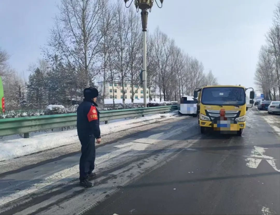 2月6日12时24分,四合警务工作站交通巡逻队员田立波和张晗在巡逻过程中发现了一起简单的交通事故,原因是路滑。他们立即维护了现场的交通秩序。 ,迅速处理事故,同时帮助当事人联系事故中队进行处理。