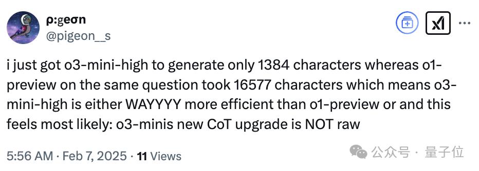 “这种可能性只有两种,一种是o3。-mini-与o1-preview相比,high效率要高得多;第二,o3-mini的CoT不是原版。