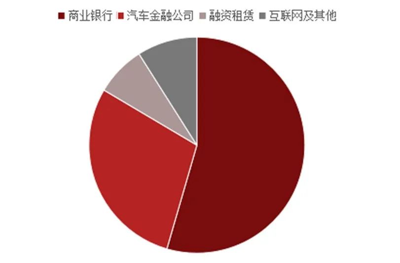 汽车金融业主要包括商业银行、汽车贷款公司、融资租赁公司、网络平台四类机构参与者,各有优势。2022年,在我国汽车金融市场,商业银行(银行贷款信用卡)占汽车金融市场的54.49%,汽车贷款公司占市场的29.02%,融资租赁和互联网金融公司占总市场的16.5%。