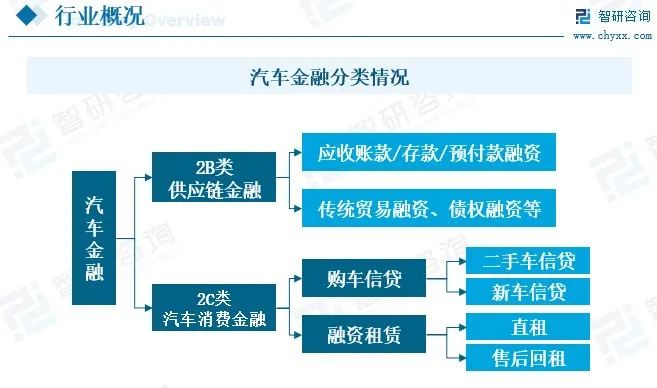 汽车金融的定义可以分为广义和狭义,其中狭义的汽车金融是指在汽车销售阶段为汽车消费者和销售者提供的金融服务,可以分为零售汽车金融和经销商汽车金融。零售车金融是为客户购买新车或二手车提供的金融服务,包括新车贷款、二手车贷款、融资租赁(售后回租、直接租赁)。随着人均收入水平的提高和消费能力的提高,中国汽车消费者逐渐成熟,汽车金融作为价值链的增值链环节,在整个汽车市场逐渐成熟的同时,取得了有效的增长。