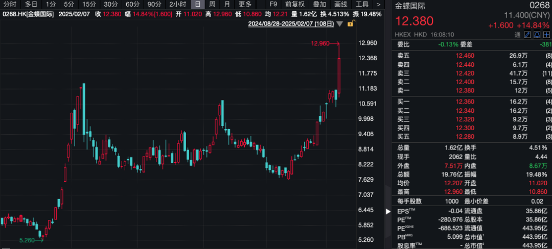 金蝶国际曾经上升了近20%。