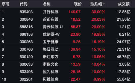 计算概念股持续上涨,浪潮信息、用友网络、东方材料等多股涨停,首都在线实现20cm涨停。