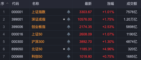 二月七日,a股三大指数集体上涨,盘中虽然缩量下跌,但集体收涨。 上证综指涨幅为1.01%,深成指涨幅为1.75%,创业板指涨幅为2.53%,北证50指涨幅为4.96%。