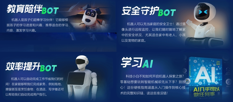 对于不了解机器人产品的消费者,JD.COM还推出了AI学习区,提供各种与AI相关的图书产品,帮助消费者解锁从入门操作到核心技术的AI机器人的完整知识链。