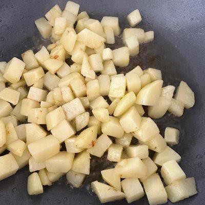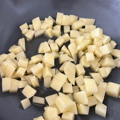 1、把土豆切成小丁,锅里放油炸土豆