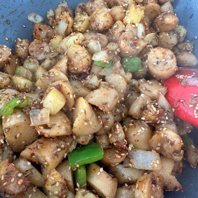 6、芝麻 2 勺,孜然 2 勺,烧烤料 1 勺炒匀