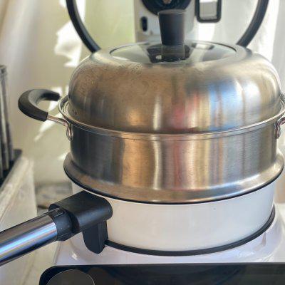 6、铺上一层核桃仁,倒入另一半黑芝麻糊,大火蒸熟。 25 分钟