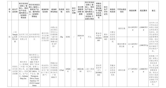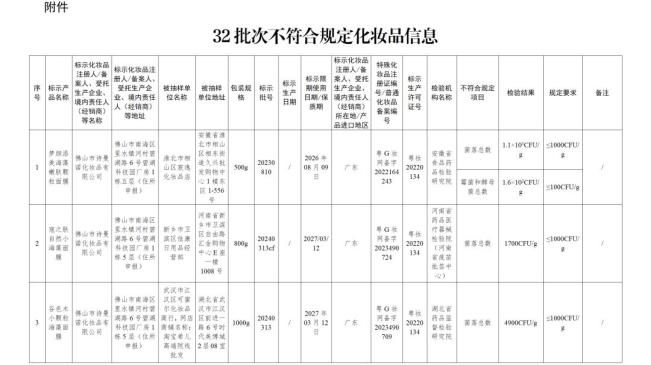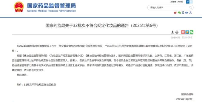 在2024年全国化妆品抽样检验工作中,经安徽美国食品药品检验研究院等单位检验,32批化妆品不符合要求,如梦颜添美海藻嫩肤面膜等。