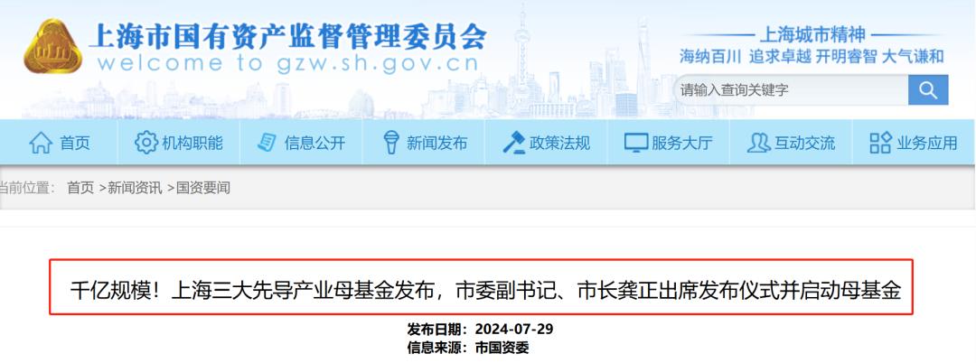 上海于2024年7月正式发布三大主导产业母基金 (集成电路、生物医学、人工智能) 以及未来的工业基金,总规模达到1000亿元。 国家母基金的规模,自然也吸引了国家母基金资本进入各地。