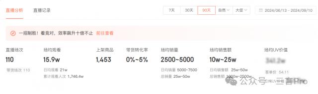 根据第三方数据平台蝉妈妈的说法,高途佳品近距离 90 天播出 110 场地,场均观看 15.9 万,总销量 25 万 -50 万,平均销售额 10 万 -25 万,总销售额 1000 万 -2500 万。