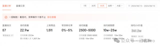 近 90 天学而思良品开播 57 场地,场均观看 22.9 万,总销量 10 万 -25 万,平均销售额 10 万 -25 万,总销售额 1000 万 -2500 万。