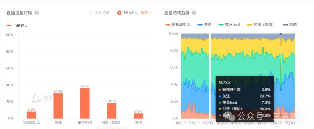 近 90 根据日常直播流量结构,估计其付费流量占比约为 18.8%。其中, 月 25 每天,付费流量的比例已经达到 46.3%。