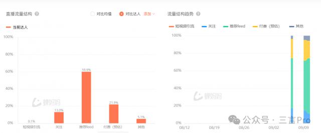 根据直播流量结构,该账号最近的三次直播付费流量比例为 21.9%。