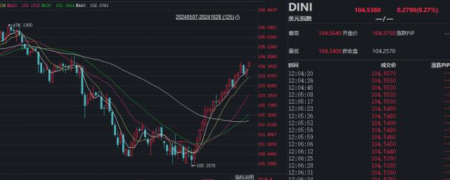 对近期人民币跌价而言,市场归因于美元的强势。中金公司分析师李刘阳表示,上周美元指数延续 10 到目前为止,月亮的上升趋势已经突破 200 截止日均线 10 月 28 日早间 11 点,美元指数徘徊 104.5 一线。目前,市场担心特朗普的相关政策可能会扰乱通胀预期甚至美联储的降息周期。因此,美国债券收益率和美元继续上升,而美股由于利率上升而下跌。上周非美货币全线走弱。