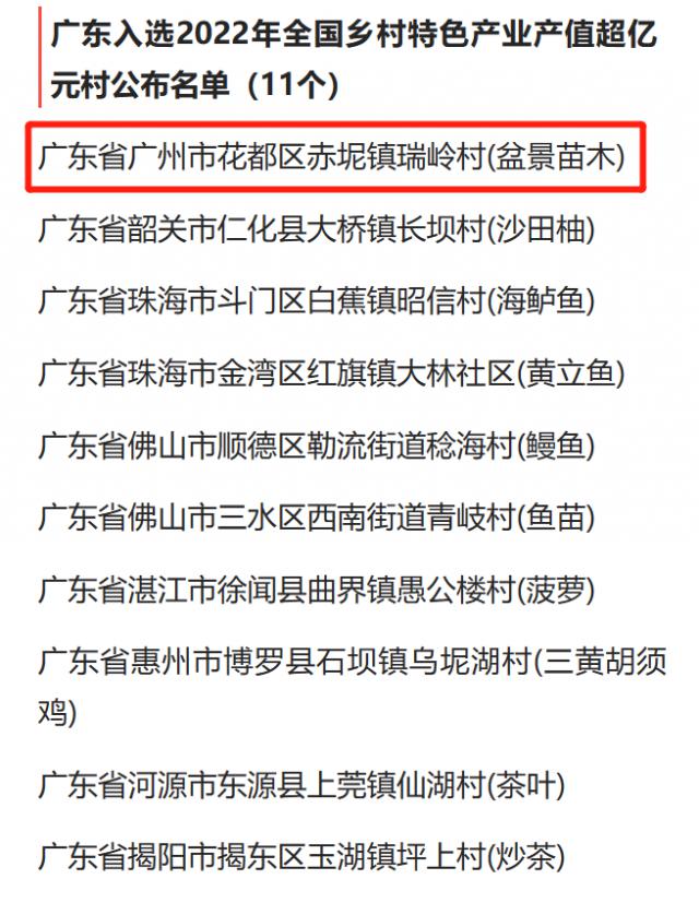 连续两年,花都瑞岭村(盆景苗木)产值上榜全国“超亿元村”。