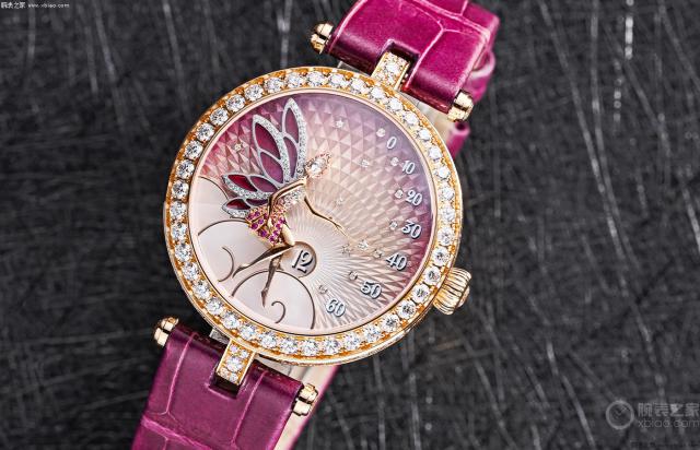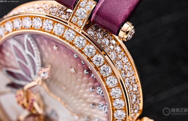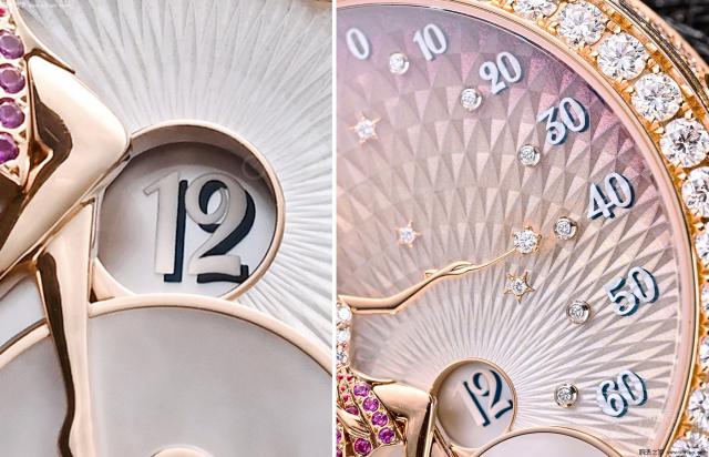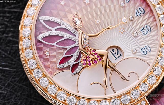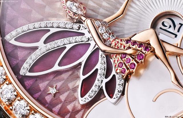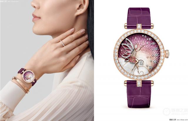 Lady F é erie Or Rose 手表上的“霞光仙子”也是如此。