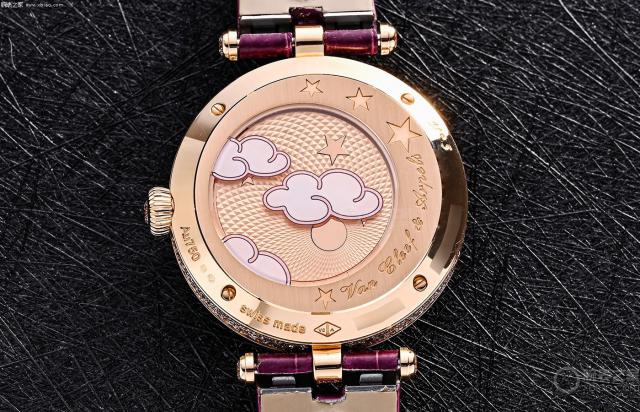 (表背用玑雕刻,云彩和星星图案装饰。 与表盘主题相呼应 )